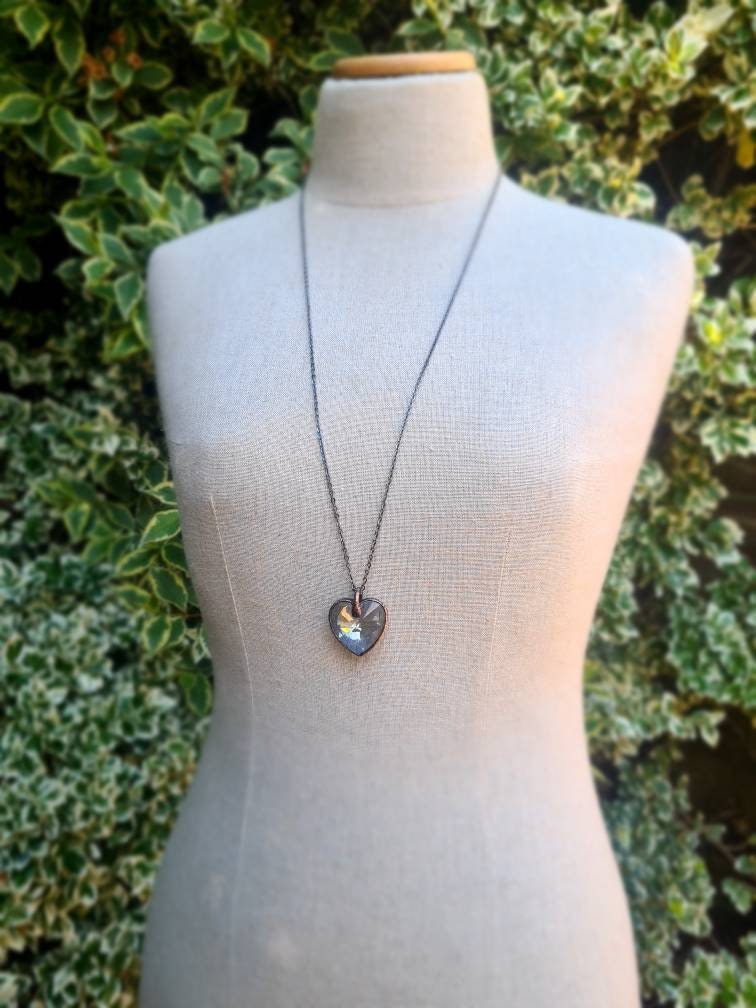 Pendentif en cristal Swarovski - Pierre précieuse en forme de cœur - Cuivre électroformé