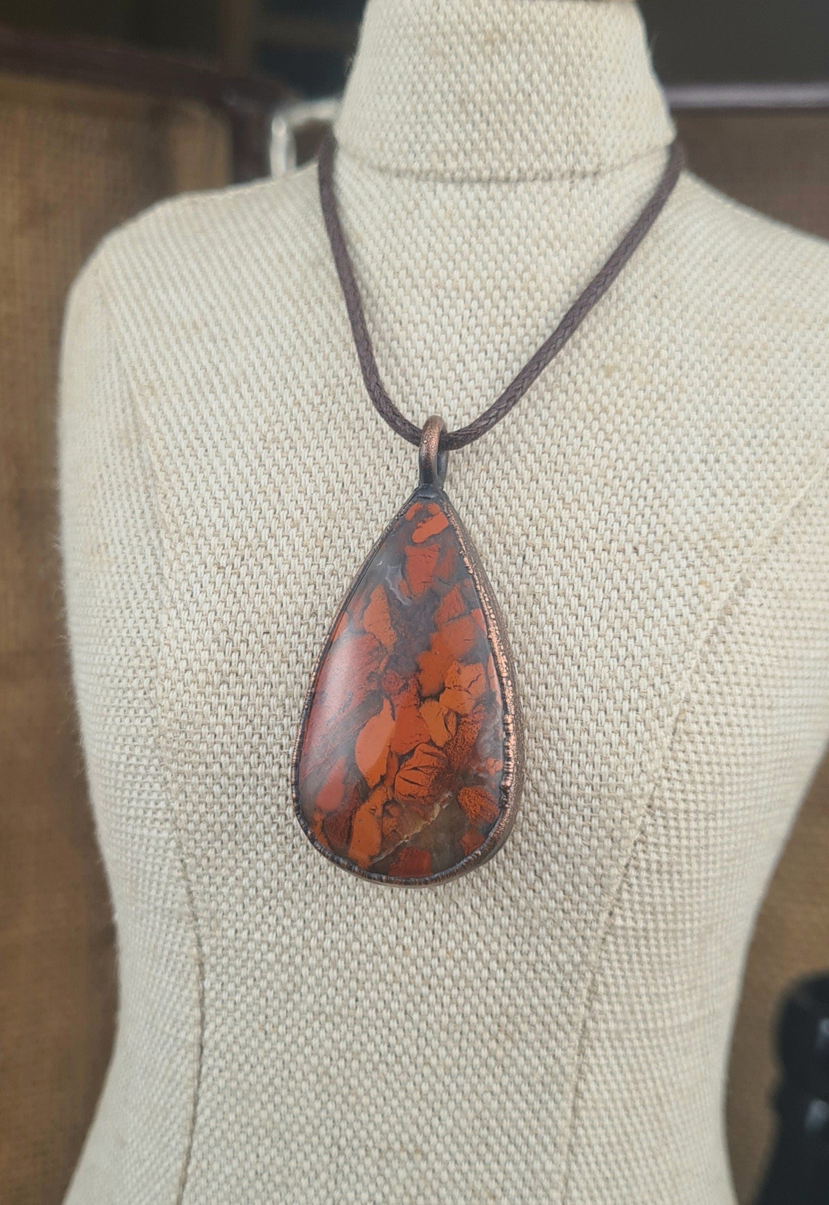 Brecciated Red Jasper Pendant - Teardrop Gemstone - Copper Electroformed