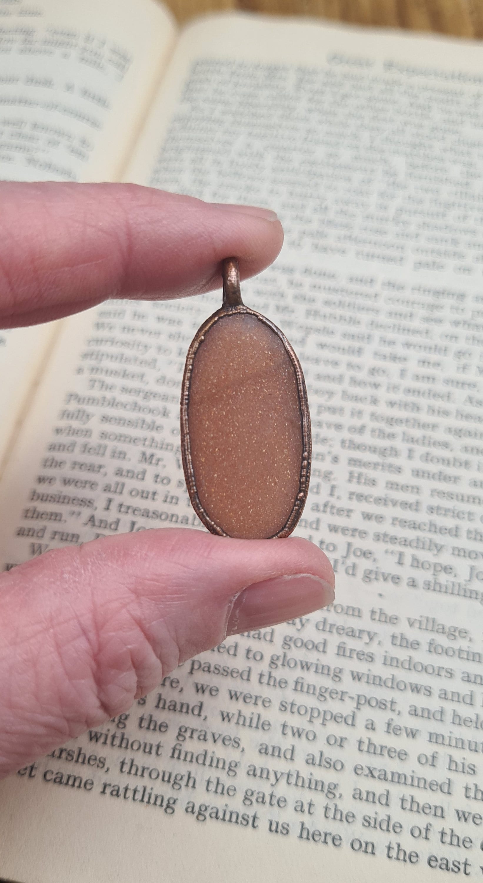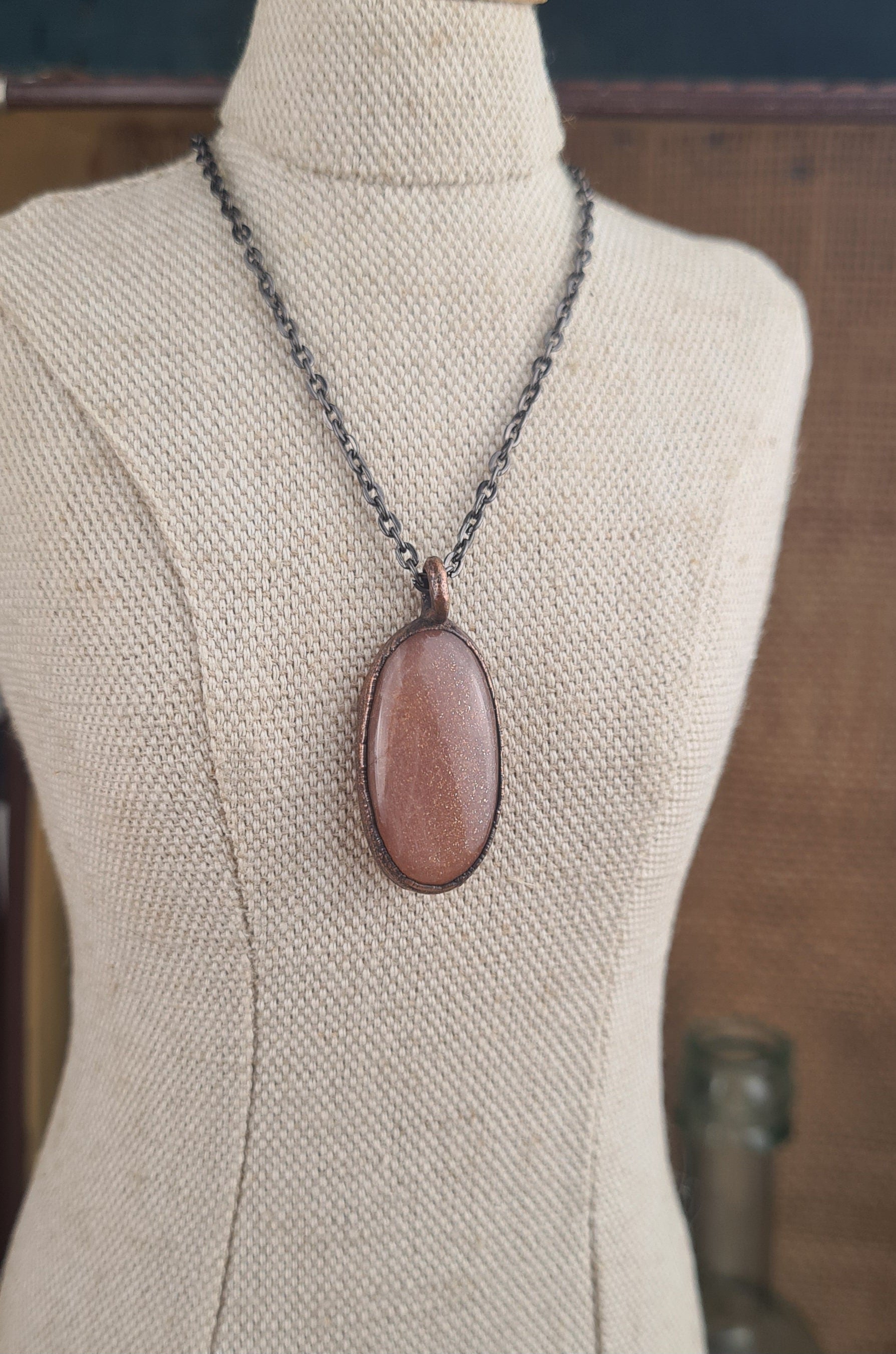 Peach Moonstone Pendant - Oval Gemstone - Copper Electroformed