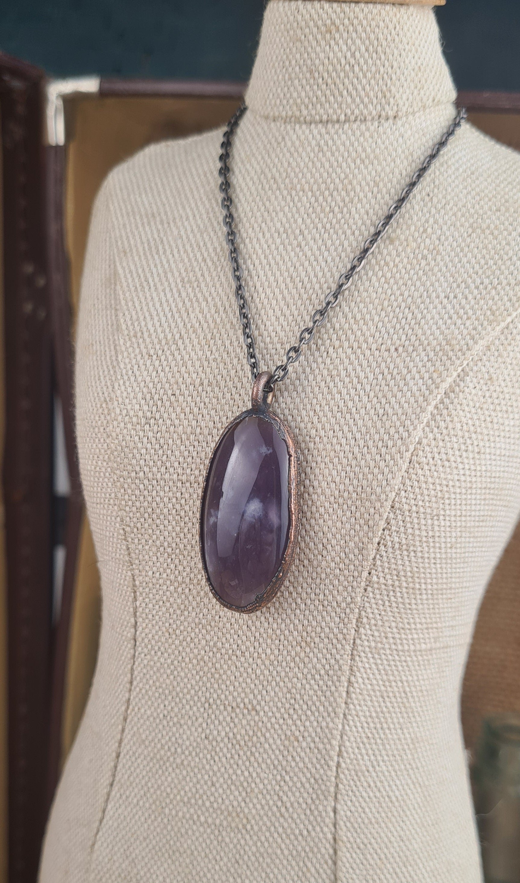 Purple Chalcedony Cabochon - Oval Gemstone - Copper Electroformed