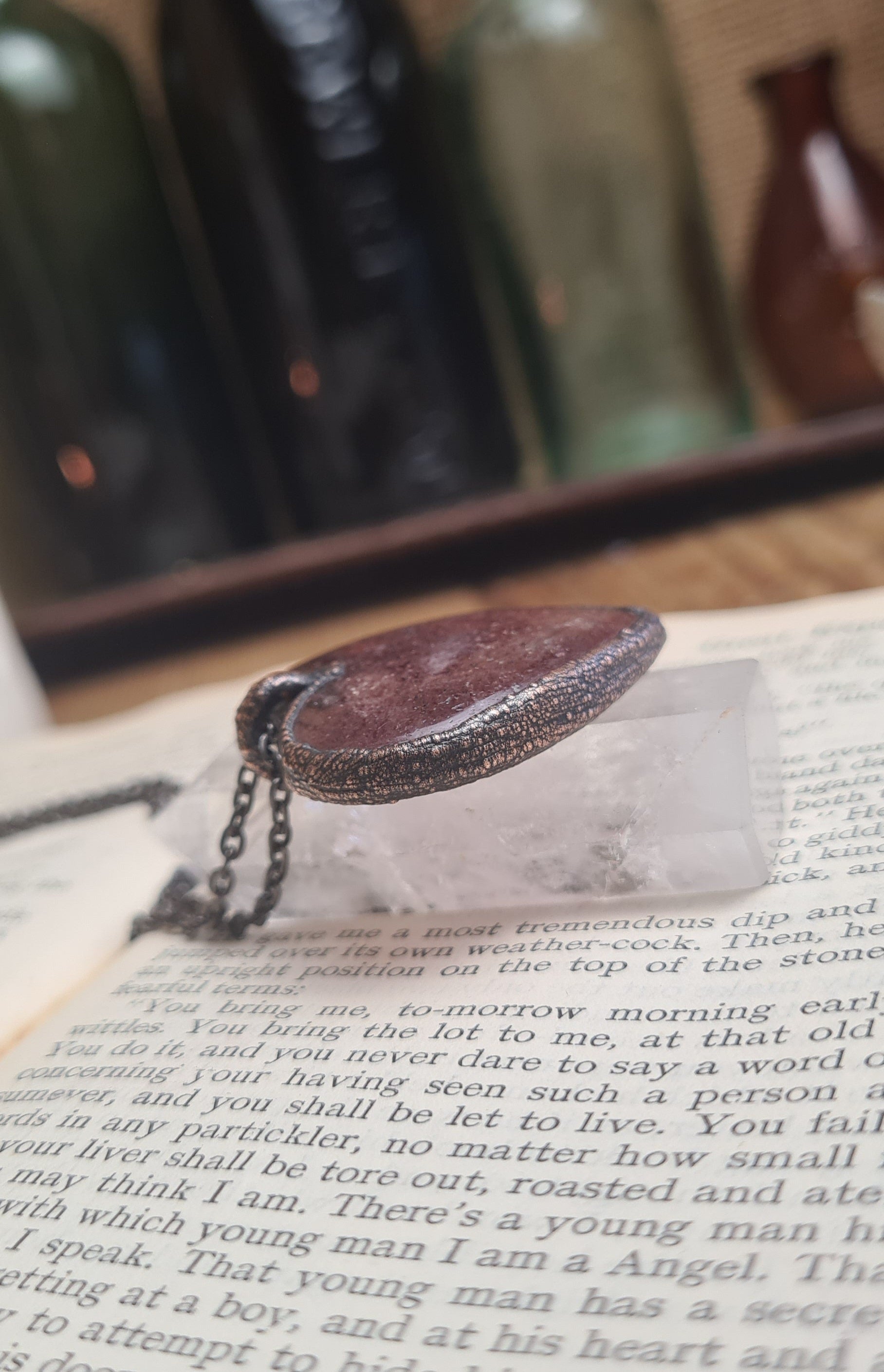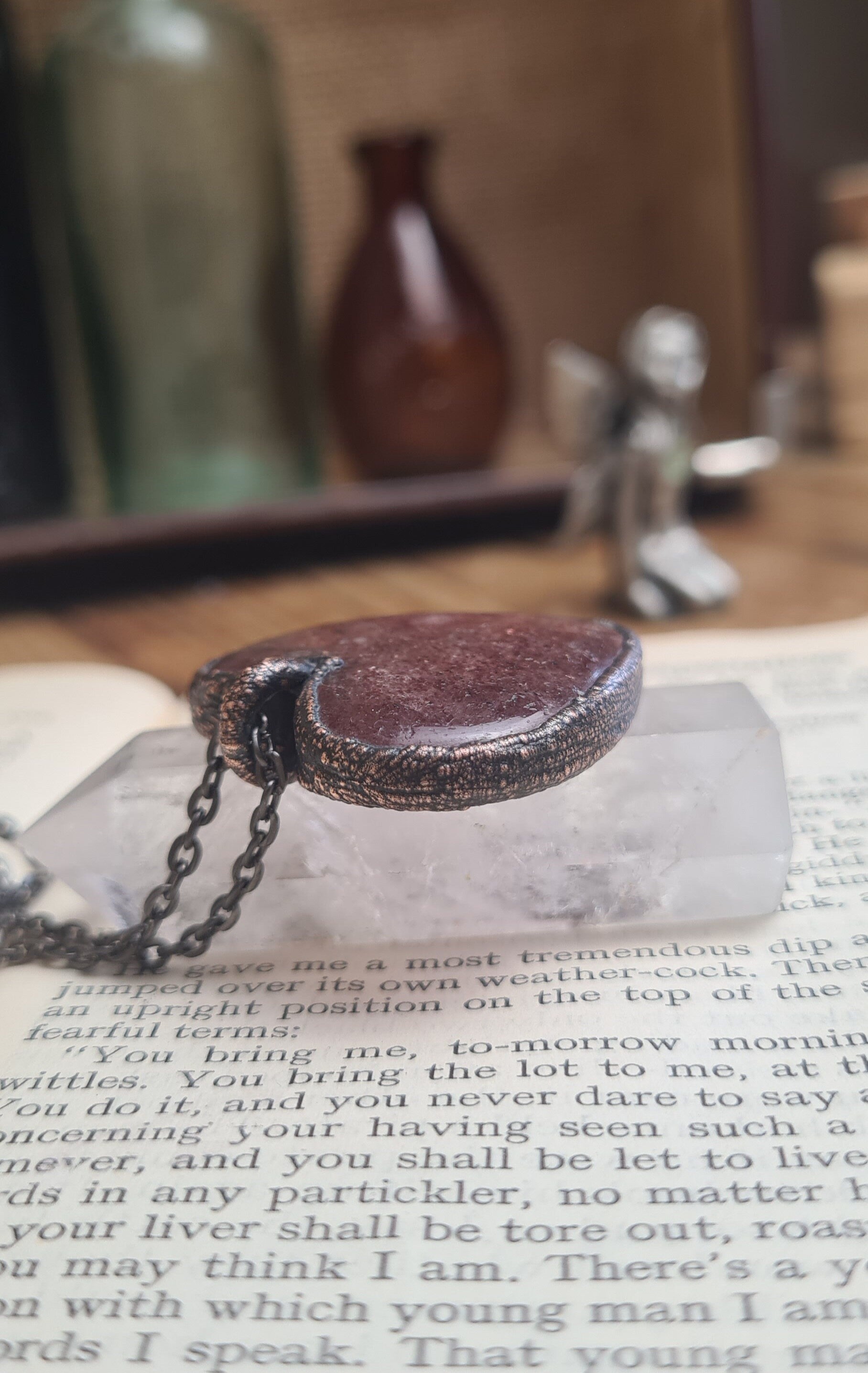 Strawberry Quartz Cabochon - Heart Gemstone - Copper Electroformed